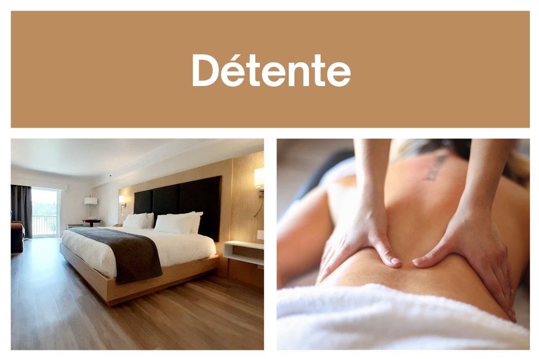 Besoin de prendre une petite pause ? Offrez-vous un moment de détente, le temps d'une nuit. Ce forfait comprend une nuit et un massage de 60 minutes.